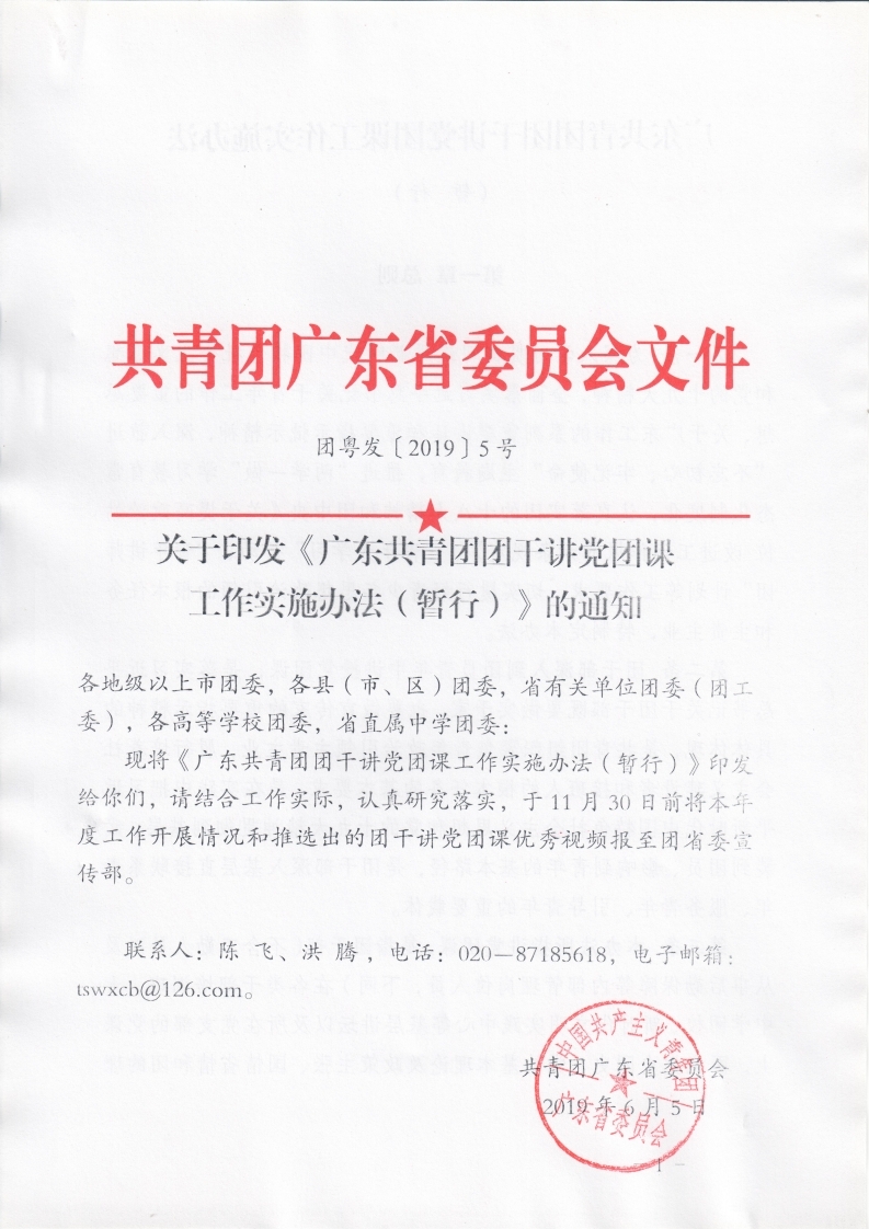 关于印发《广东共青团团干讲党团课工作实施办法(暂行)》的通知